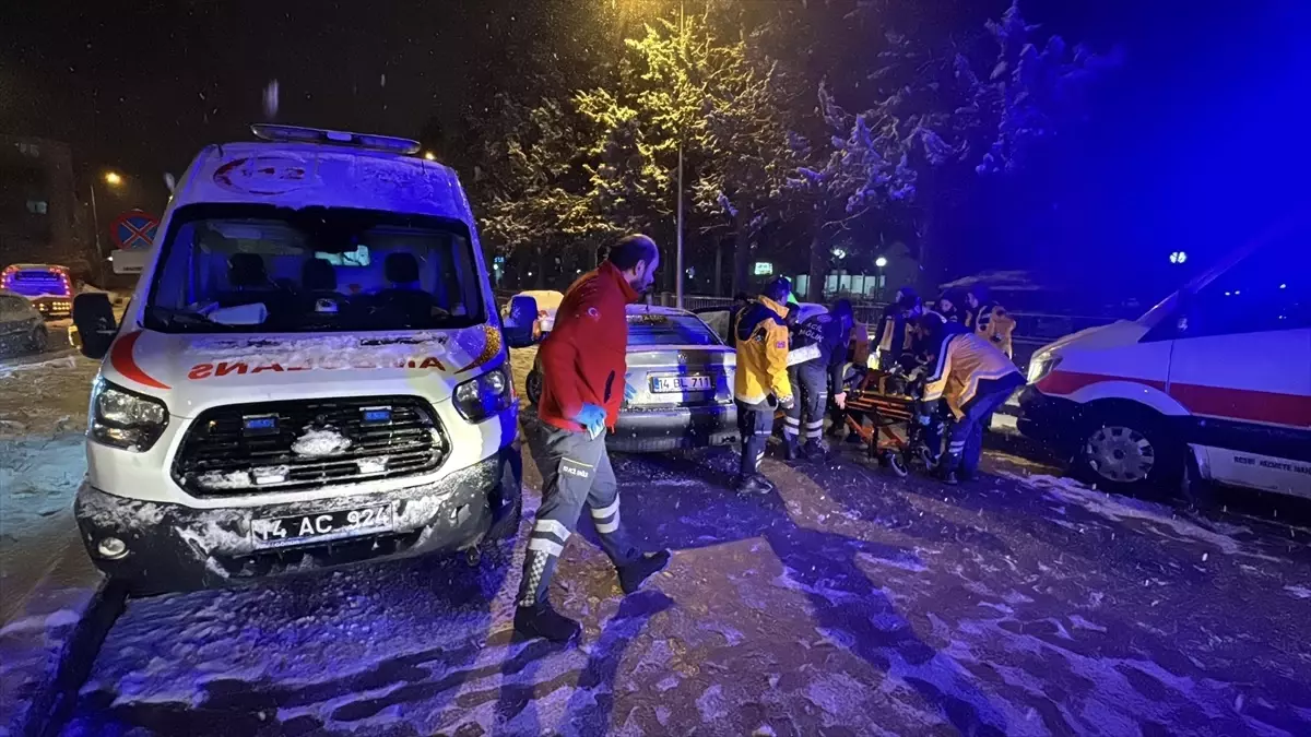 Sağlık Mahallesi Hekim Sokak’ta İlhan Ç. idaresindeki 14 BL 711 plakalı otomobil, karlı yolda kayarak, Kadir B. idaresindeki 14 AC 924 plakalı ambulans ile çarpıştı.